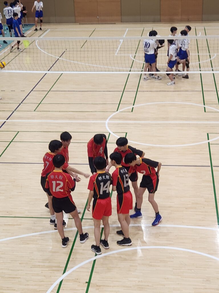 お互いに最初の試合というところで、緊張感のある中対戦していました。若干のリードを保ちながら、だんだんと郁文館のペースに持っていくことが出来ました。1セット目は相手のミスも目立った中で勝ち取ることができ、2セット目・・・前半は切り替えてきた相手ペースに飲まれリードを許していました。攻めた攻撃が出来ず自分たちのミスが追いつけない原因でした。いつもならここでフェードアウトしてしまうところですが、前日の練習でも対策してきたことが活かせました。タイムアウト後声を出し合い、攻める姿勢が見られました。いつの間にか点数を抜き、相手のミスを誘い、結果的にこの試合を勝ち取ることが出来ました!!試合と取れた瞬間の喜びは一入です。