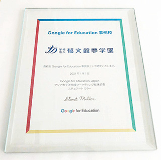 郁文館夢学園は、ICT活用の実践校としてGoogle社から「Google for Education事例校」に認定された全国8番目の学校です。