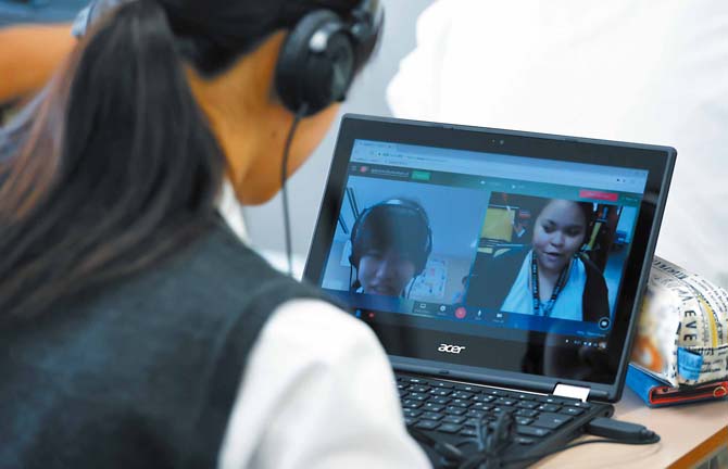 世界各国の現地講師とマンツーマンのオンライン学習を行います。全生徒が365日、好きな時間に好きなだけ席上留学を行うことができる郁文館独自の席上留学です。ただの「英会話」ではなく、ライティングやリーディングなどの力もしっかりと身に付けられるうえ、自己紹介レベルから実践英語レベルまで、生徒それぞれのレベルに合わせた学習を進めています。