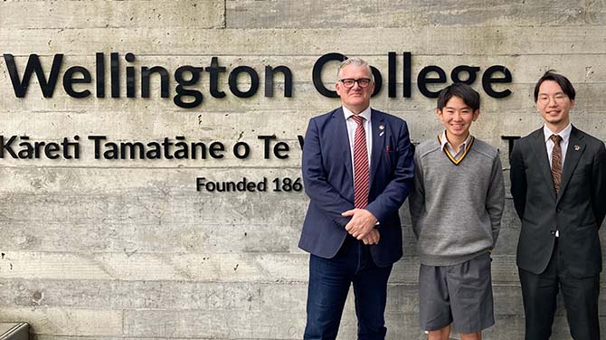 中学3年次の夏休み期間、高校受験がないことを活かして、ニュージーランドでの2〜6週間留学(クラスにより選択制)を実施しています。ニュージーランドでの留学先は1校複数名(グローバルリーダー特進クラスの生徒は1校1人)。中学校から本場の英語に触れ、英語4技能(リスニング、スピーキング、リーディング、ライティング)と、国際感覚を伸ばすことができます。