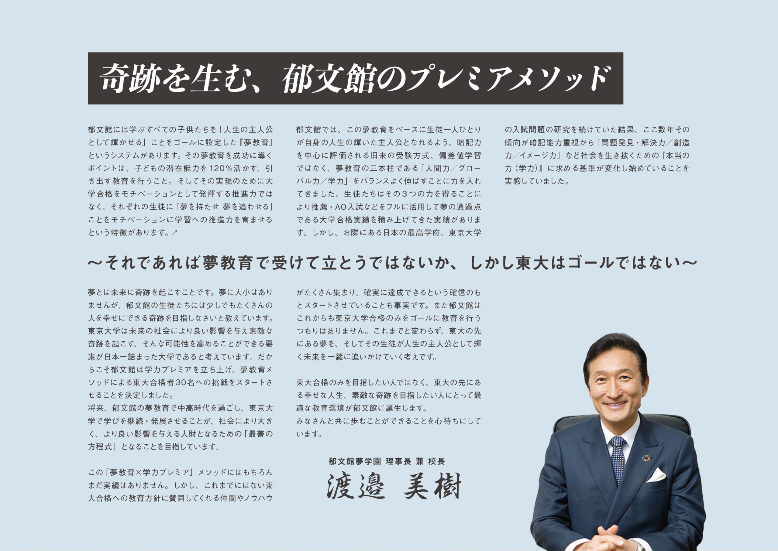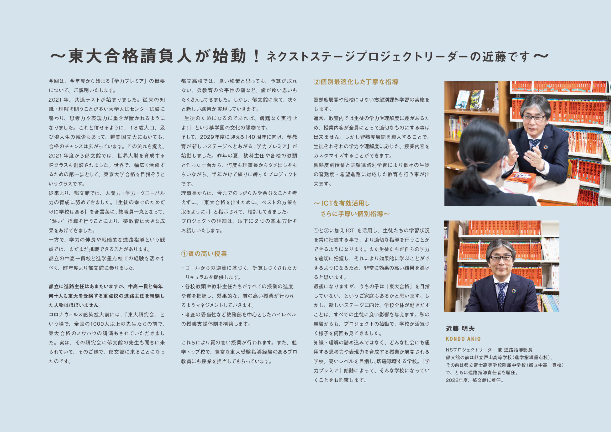 学力プレミアとは、郁文館夢学園の夢教育で育む3つの力 【人間力】【グローバル力】【学力】の【学力】にクローズアップしたプロジェクト。