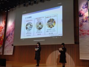 そこで郁文館中学校の成田あおいさん、小杉莉穂さんが「郁文Sloths」として「小1の壁を打ち破れ!」というビジネスアイデアをプレゼンしました。