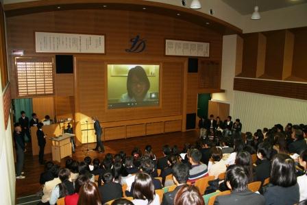 (海外の大学に通う卒業生もスカイプで参加した11月9日のグローバル高校説明会の様子)