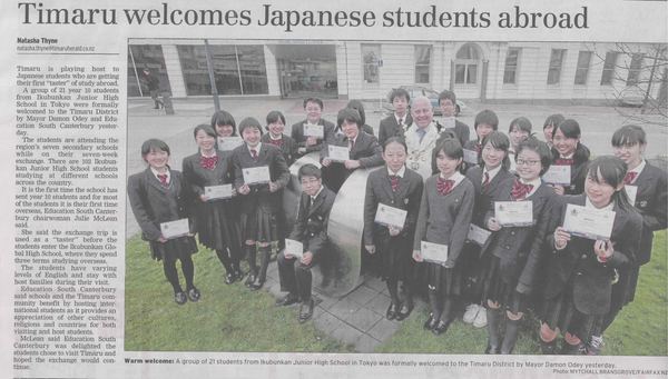 留学中の生徒たちがティマル市長と面会する機会に恵まれ、その様子が地元の新聞に取り上げられました。