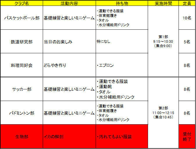 ≫各クラブの活動内容を以下よりご覧いただけます。