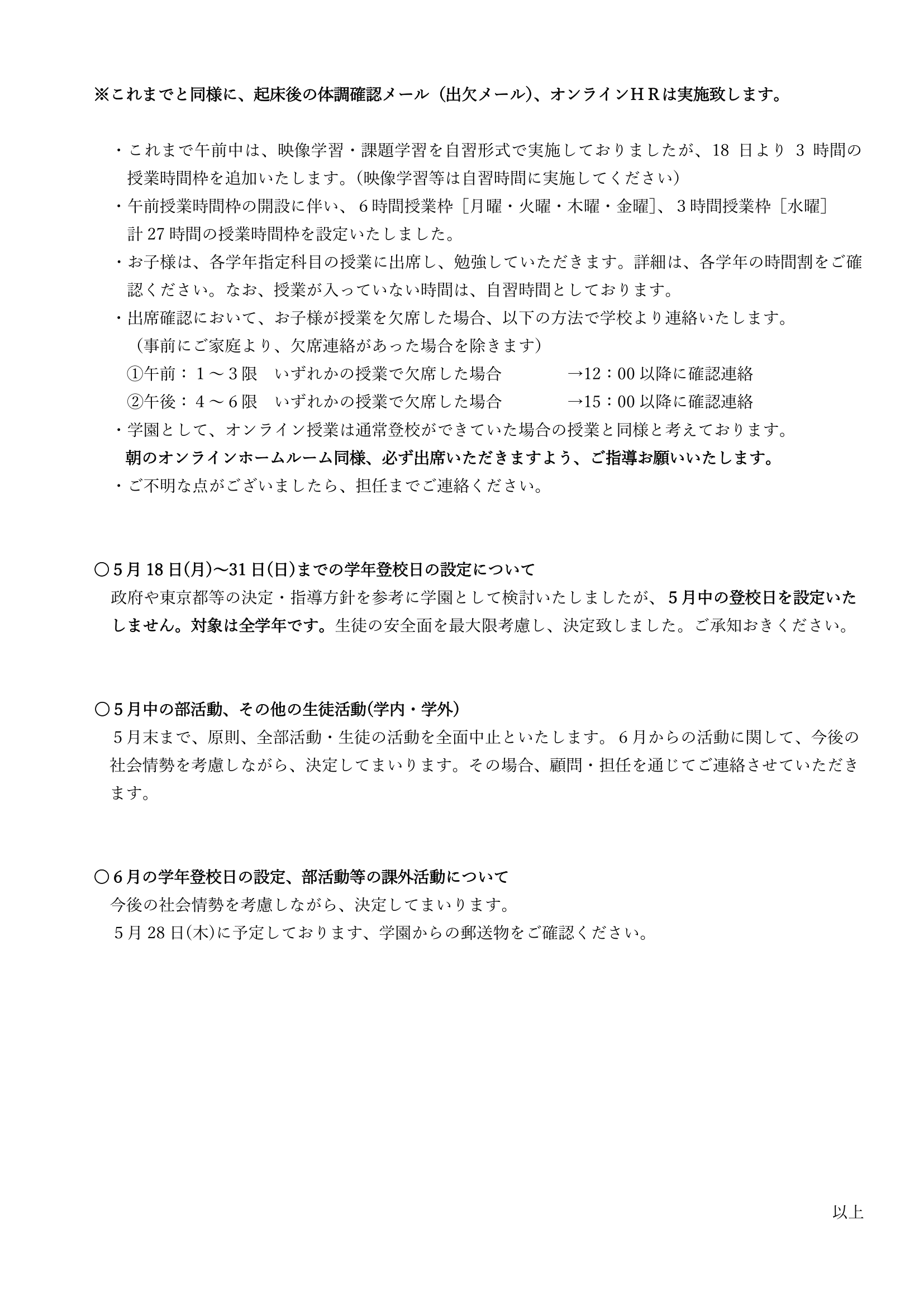 5月18日~31日までの家庭授業生活について