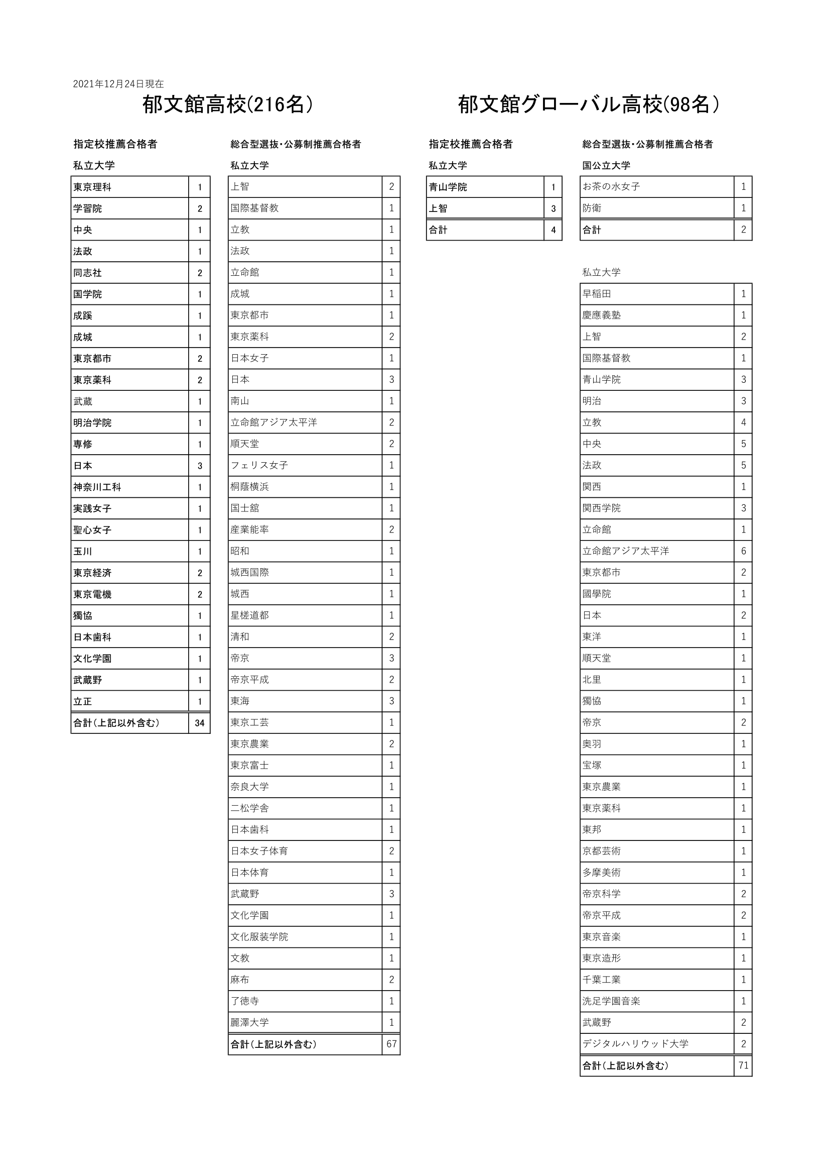 郁文館高校・グローバル高校の大学推薦入試の合格速報を掲載します。