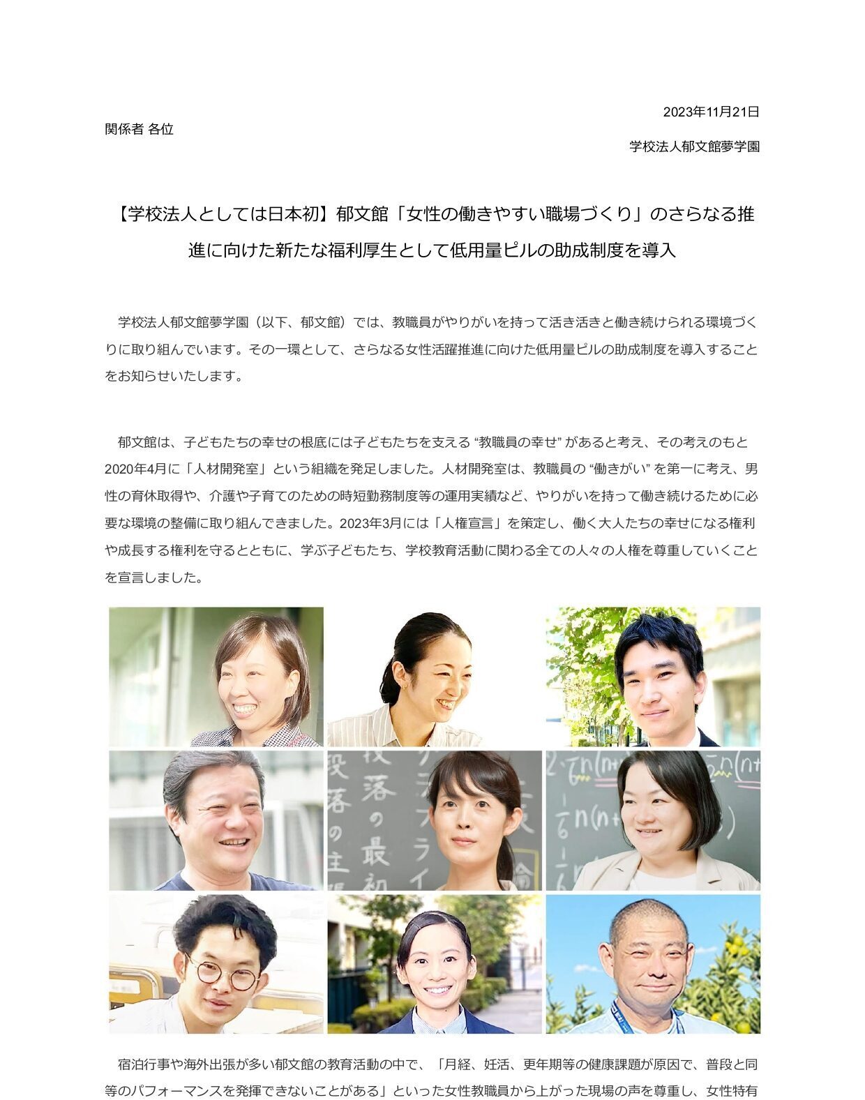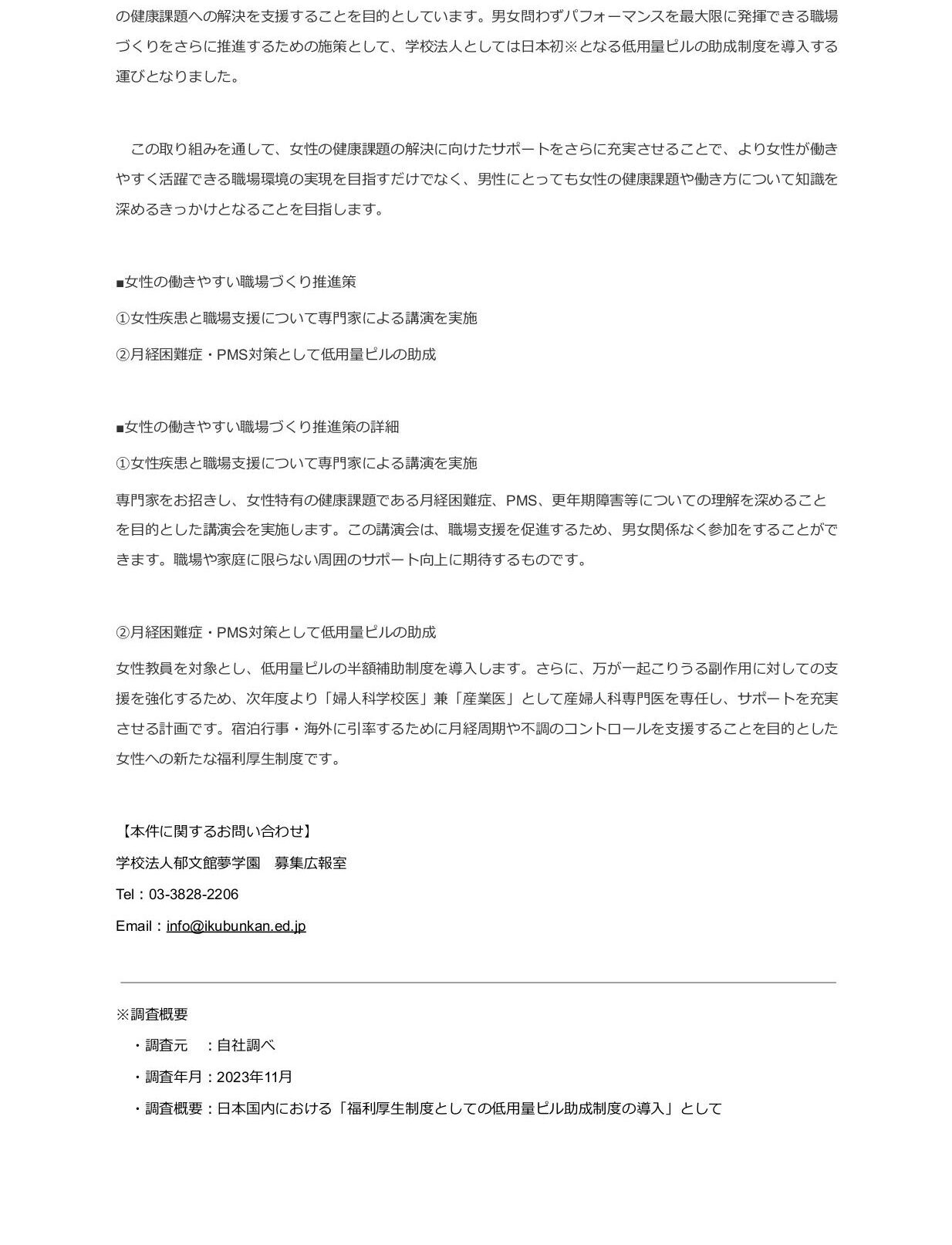 【学校法人としては日本初】「女性教職員の働きやすい職場づくり」のさらなる推進に向けた新たな福利厚生として低用量ピルの助成制度を導入