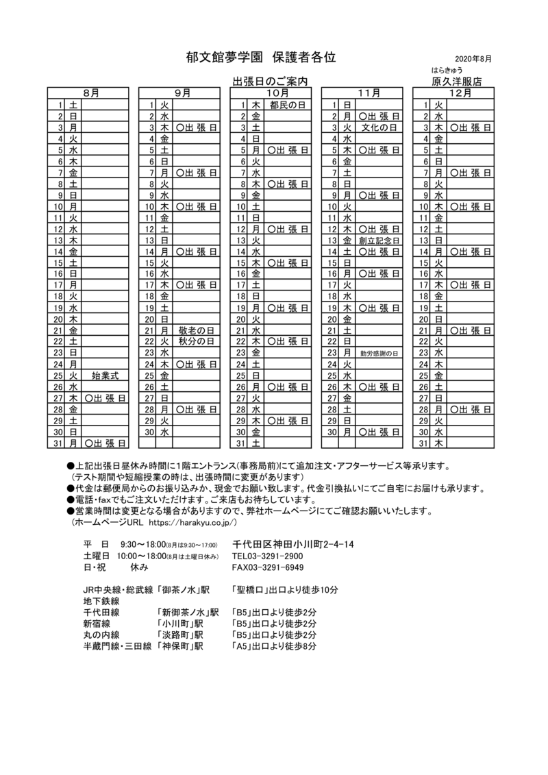 【2学期】ローファー(ムーンスター製)校内販売スケジュール