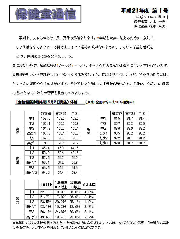 保健室通信 第1号