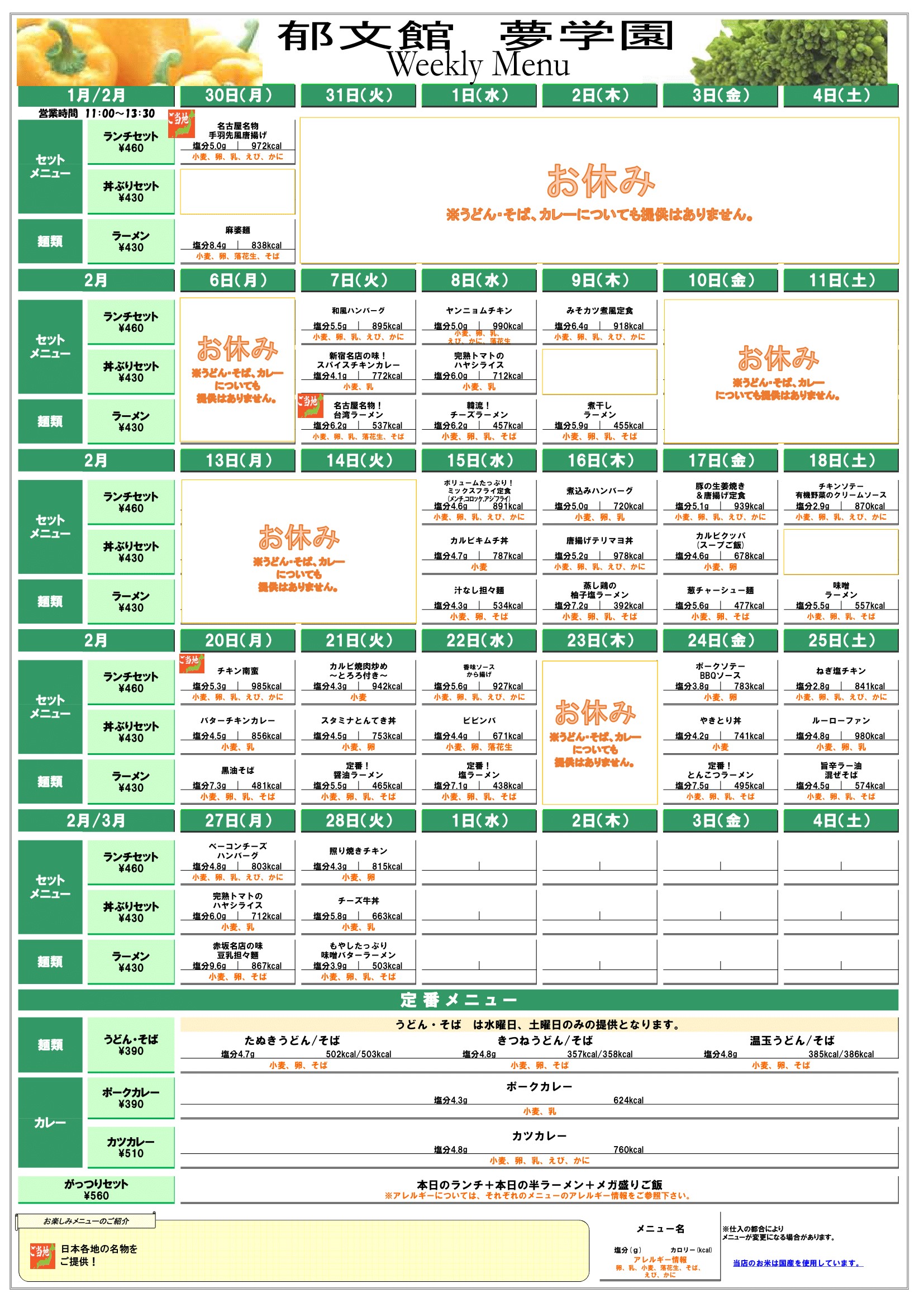 【お知らせ】 夢食堂2023年2月の献立をお知らせ致します。