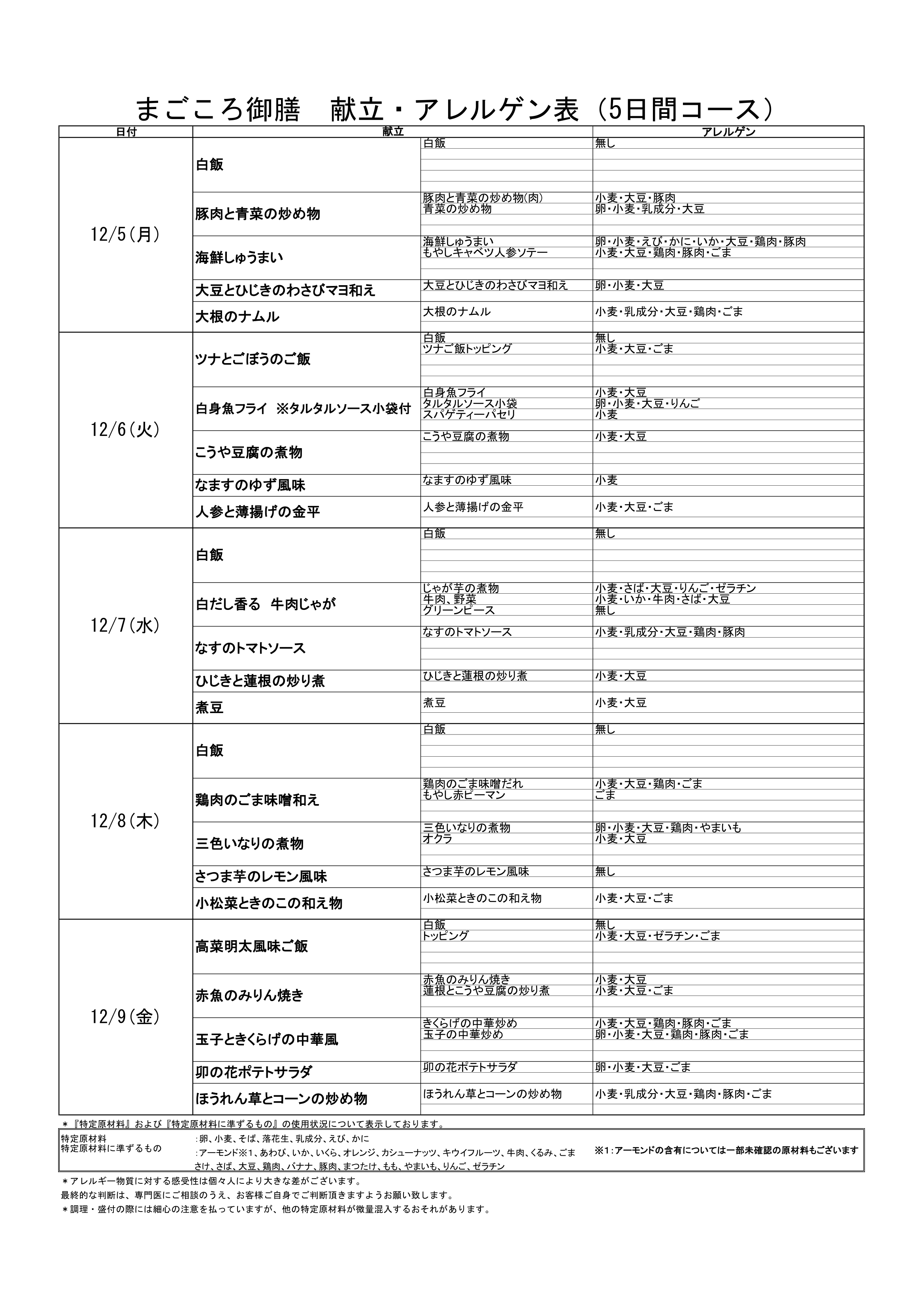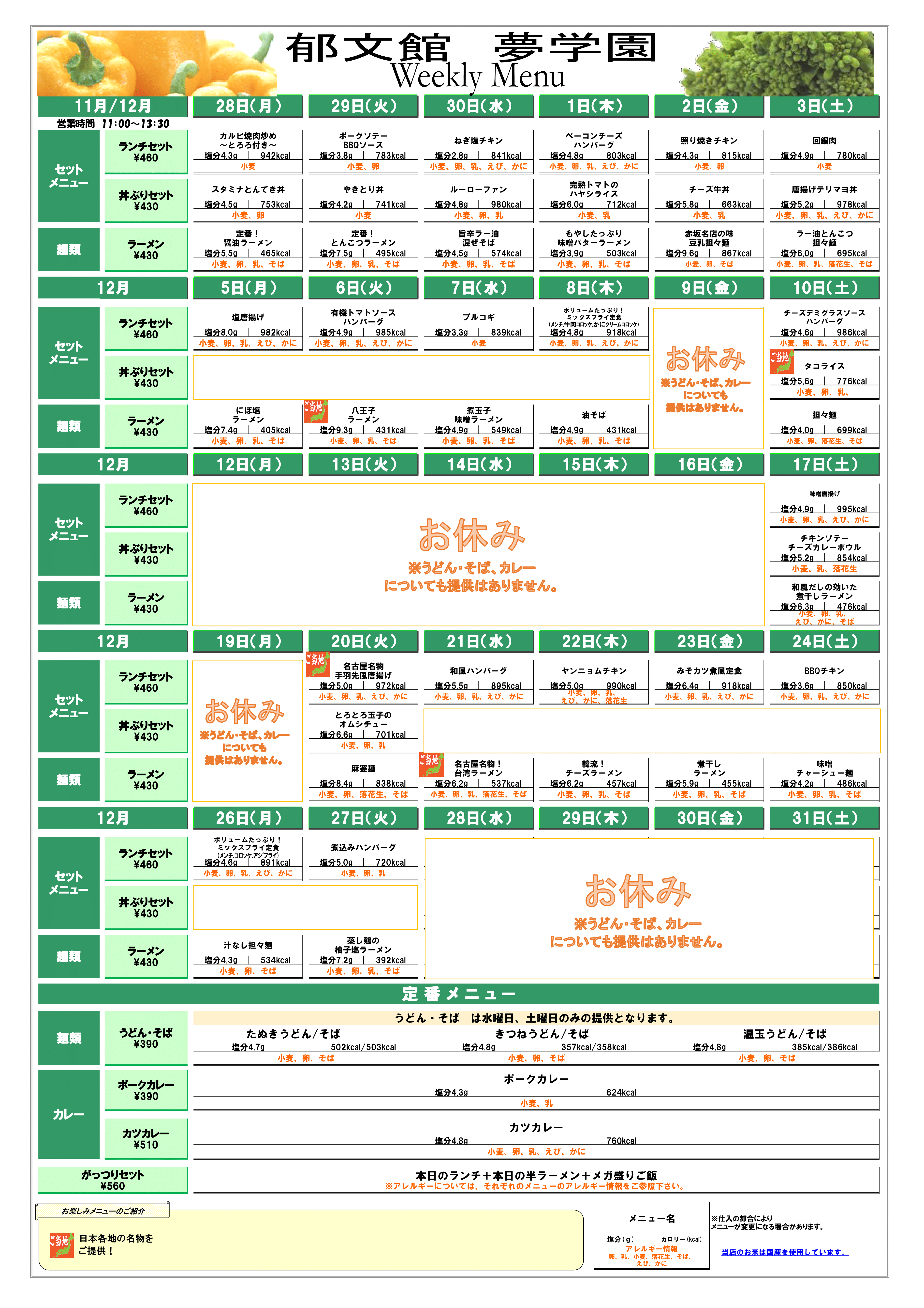 夢食堂12月の献立