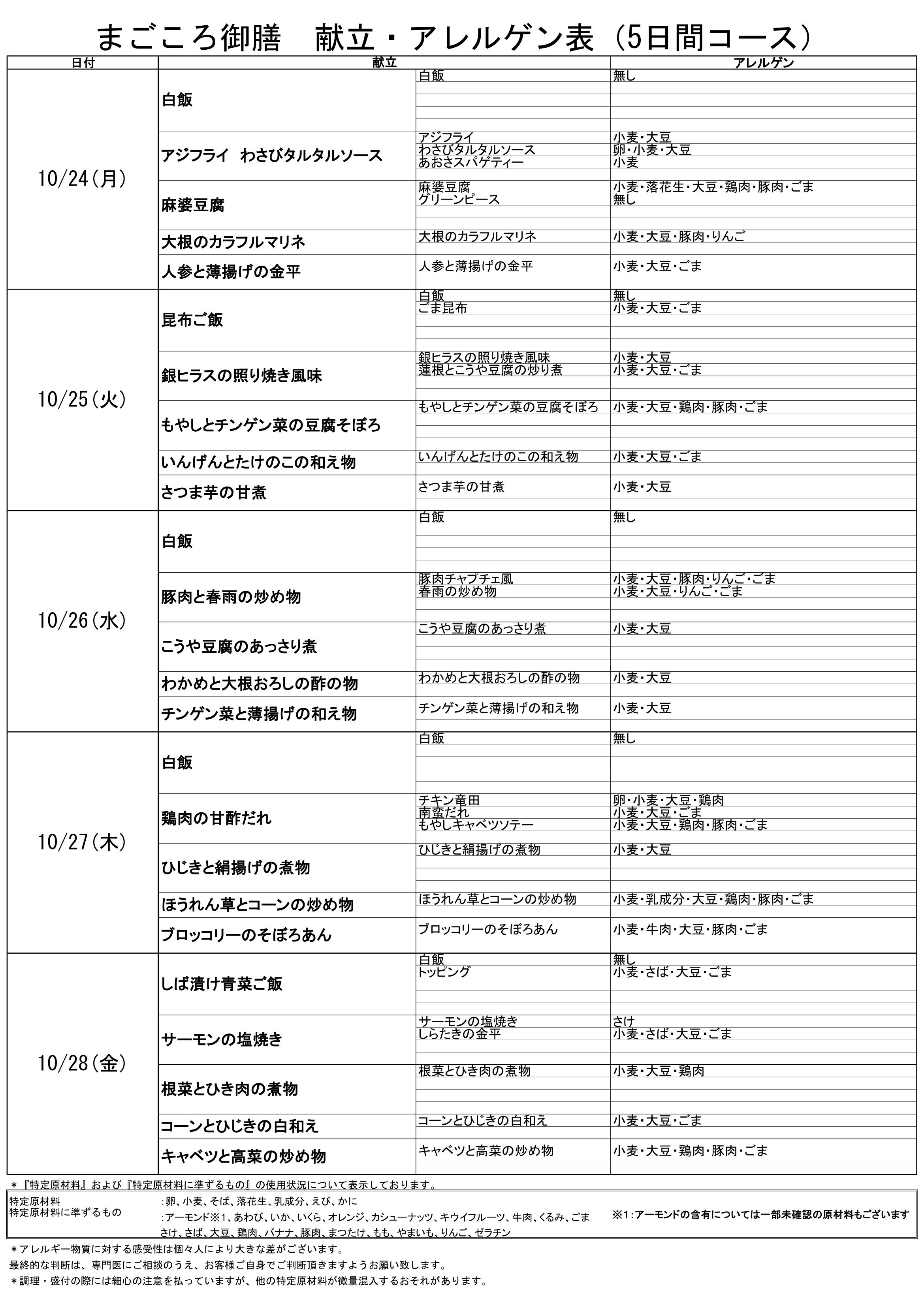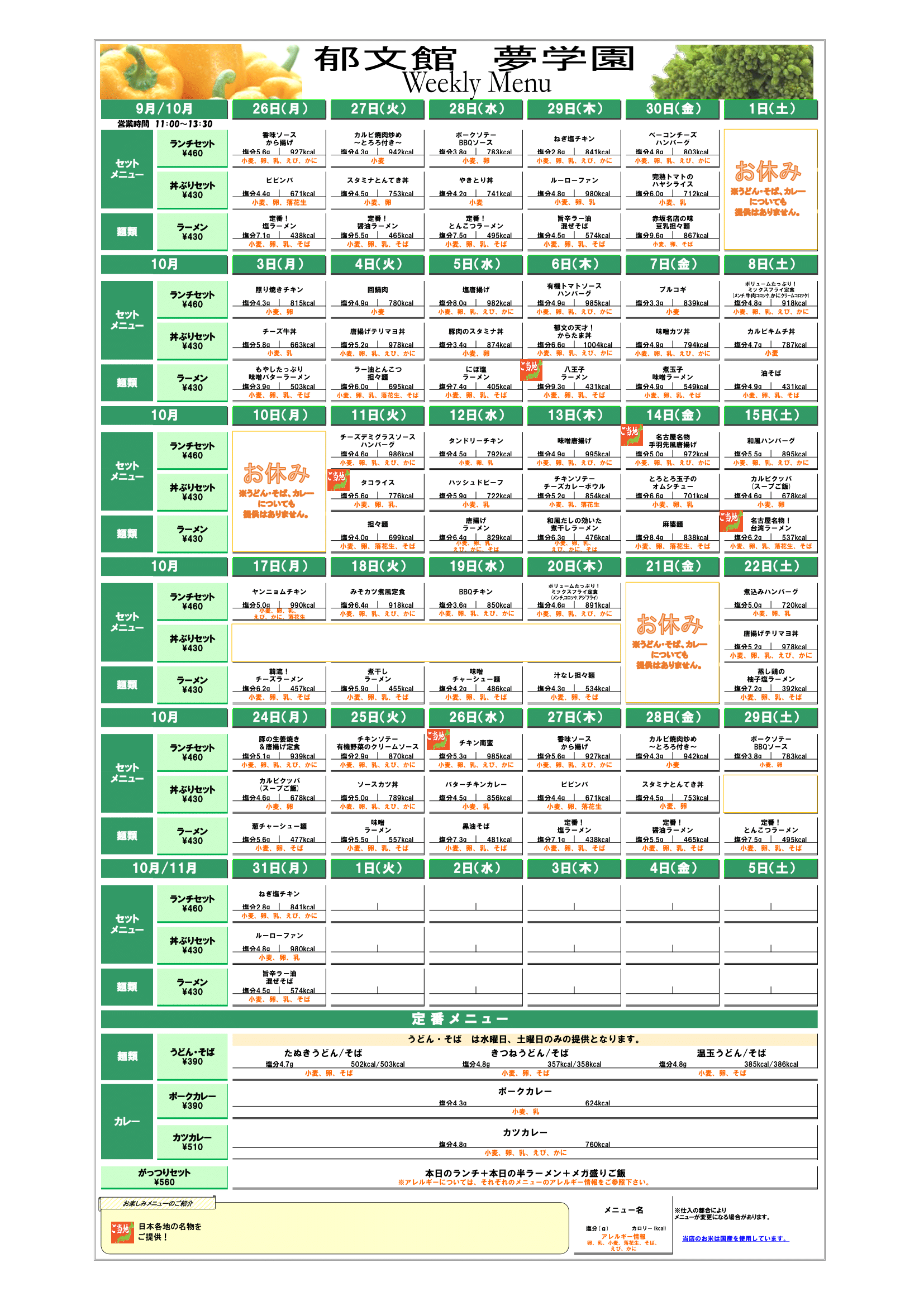 夢食堂10月の献立