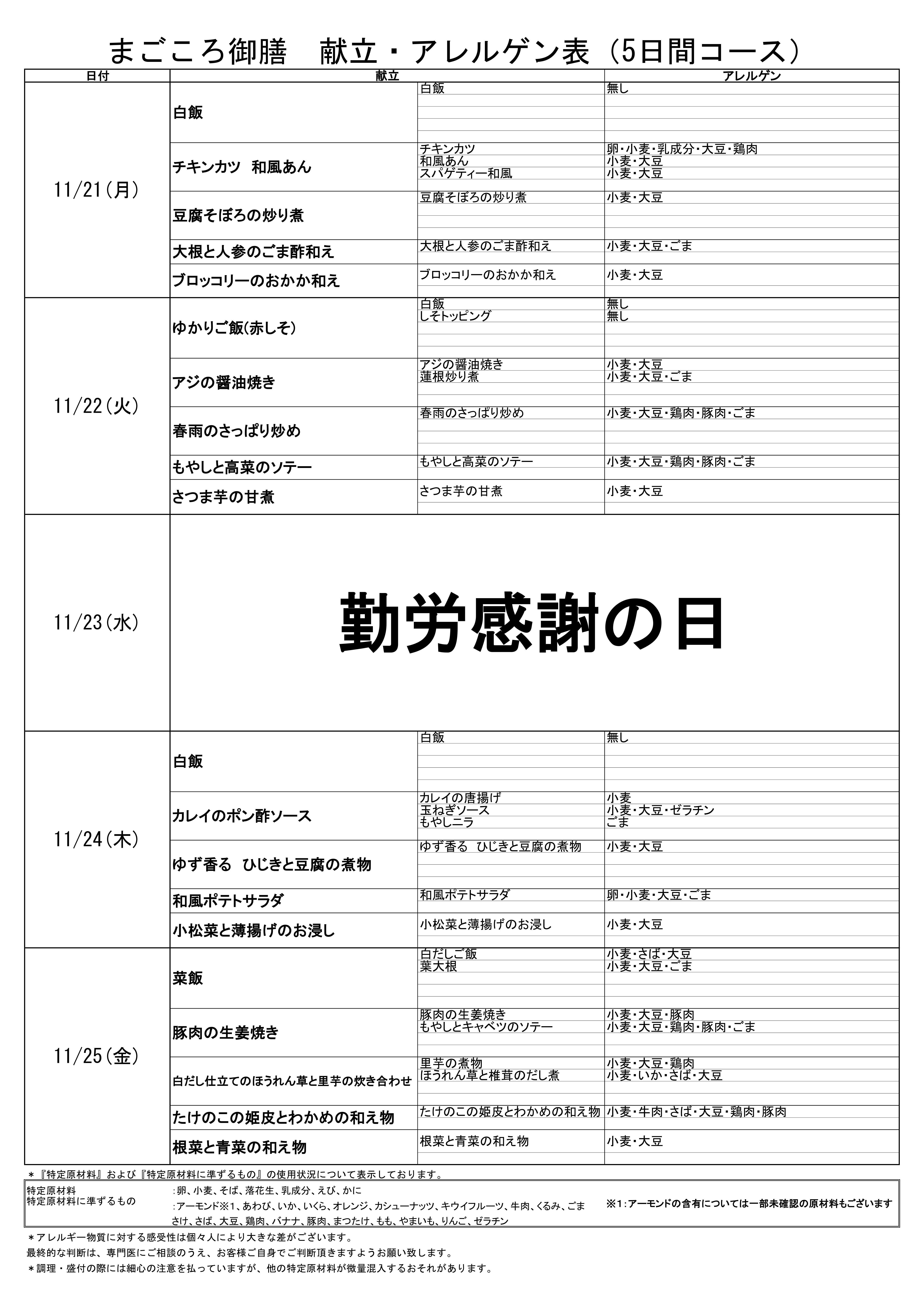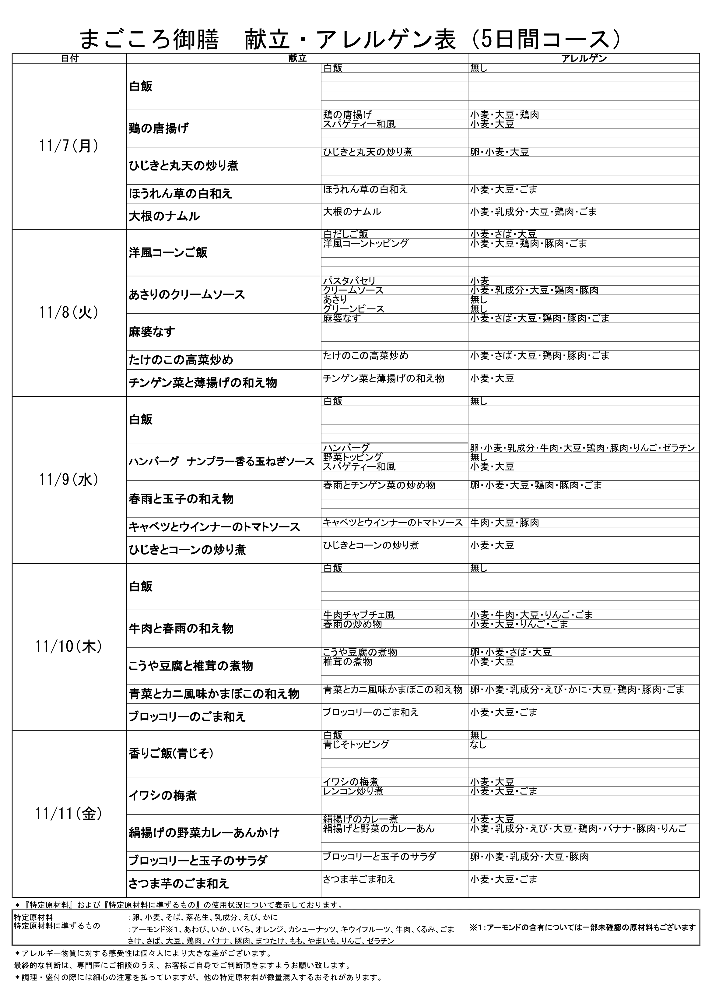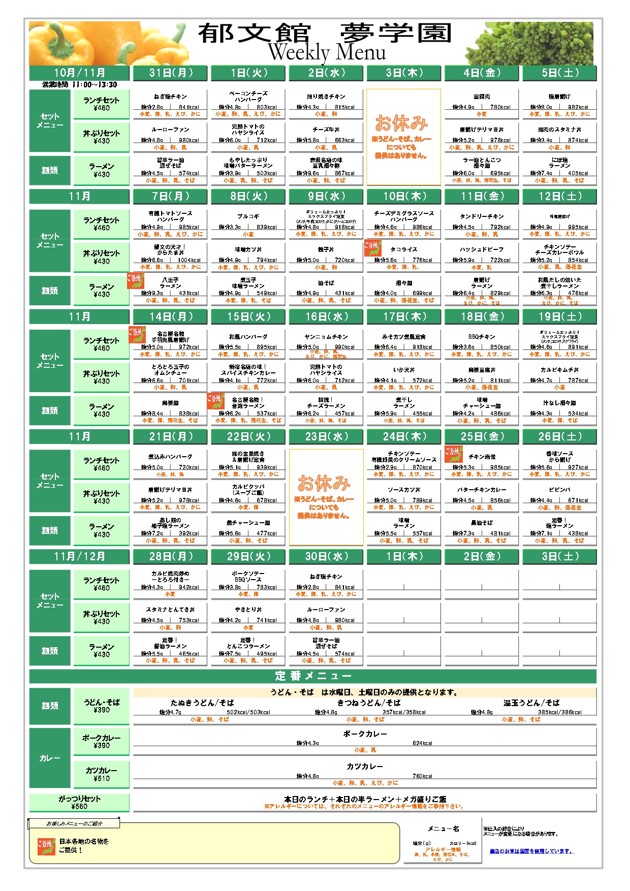 夢食堂11月の献立