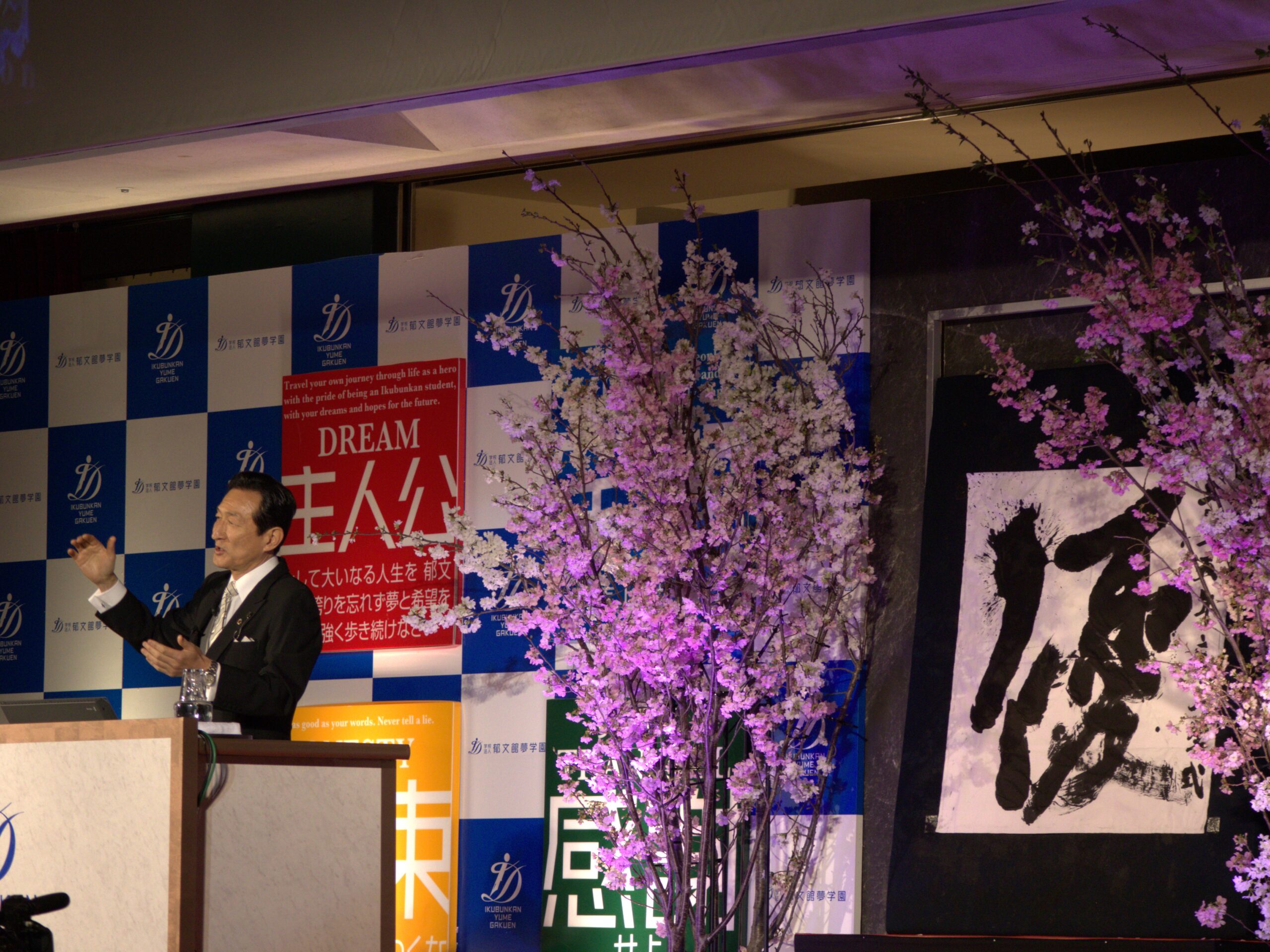 みなさんが大いなる夢を持ち、羽ばたく舞台がここにはあります。学園生活が、みなさんの宝物になるような毎日を約束し、歓迎のメッセージに代えさせていただきます。」