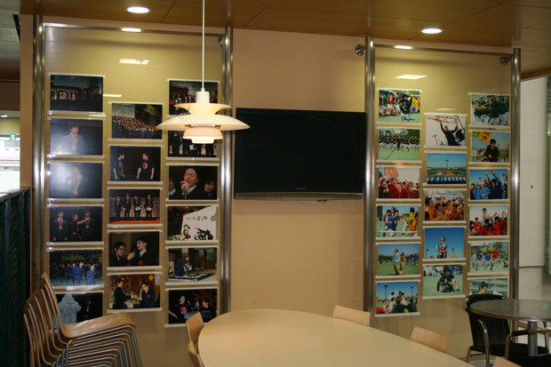 理事長の写真が肖像画に変わり、学園の歴史コーナーに写真が展示され、TVモニター脇のパネルが出来上がりました。