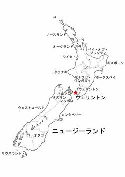 在日ニュージーランド大使のイアン・ケネディ氏とニュージーランドの地図です。