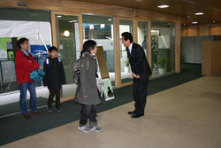 本日は、渡邉理事長も玄関で受験生を迎え、激励しました。