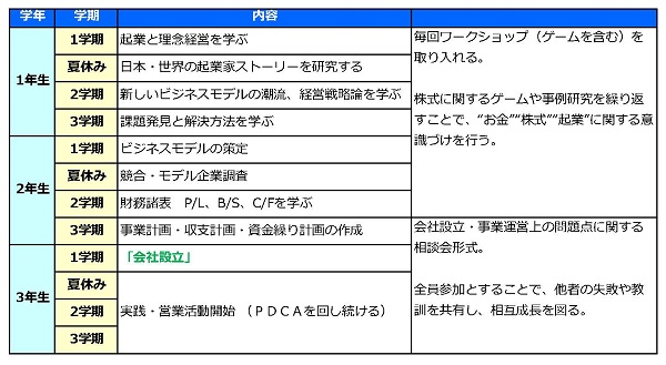 そして、同校は来年度からいよいよ「高校生社長講座~起業塾~」をスタートします。予定では60名程の希望者を募り、3年間かけて様々な実践的カリキュラムを受講していくプログラムとなっています。1講座は120分ほどで、卒業単位としての認定も行います。