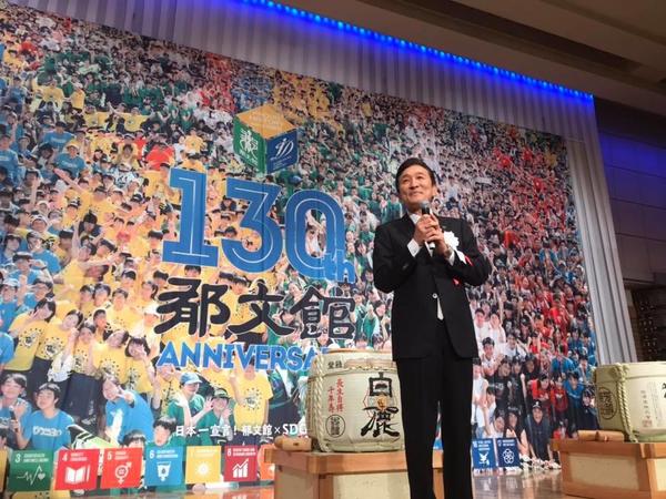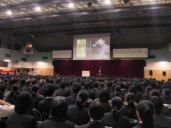 朝一番で創立者の棚橋一郎先生の墓前にて、 無事に130周年を迎えることができたことを報告し、 その後は全校生徒と教職員が体育館に集まり、130周年記念式典を執り行いました。