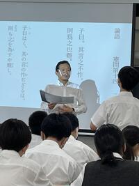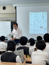 後半の日経新聞をテキストにした勉強では、様々なニュース見出しに関しての解説があり、「一定条件のもと国民に対して一律5万円を給付した方がいいか」「円安がみんなに与える影響は」など一人ひとりが新聞記事に対してどのように捉え、考えるかについて質問されました。様々な課題には固定の『正解』がある訳ではなく、それぞれの事象に関して関心を持ち、自分事として、根本的、多面的、長期的に考えることこそが大切だと伝えられました。