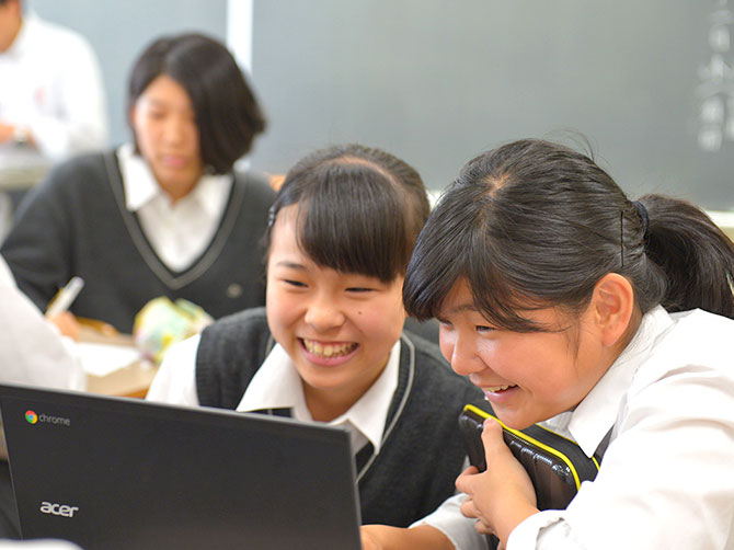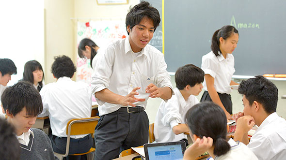 生徒は、グループメンバー、時にはクラス全体、学年全体の前で「なぜそのテーマを選んだのか」、「どんな内容なのか」、「自分の意見は何なのか」、時間配分を考えながら論理的に述べることが求められます。社会的な出来事に興味・関心を持ち、知識と思考を深めることができます。毎回必ず全員に発言の機会を設けていますので、人前で自分の意見を論理的に発表する訓練にもなります。一般的に自分の意見を述べることは日本人にとって苦手とされていますが、NIEを通じてトレーニングを重ねることで、国内はもとより、海外の大学に進学しても、授業中のディスカッションで他の学生たちと遜色なく意見を述べることができるようになります。