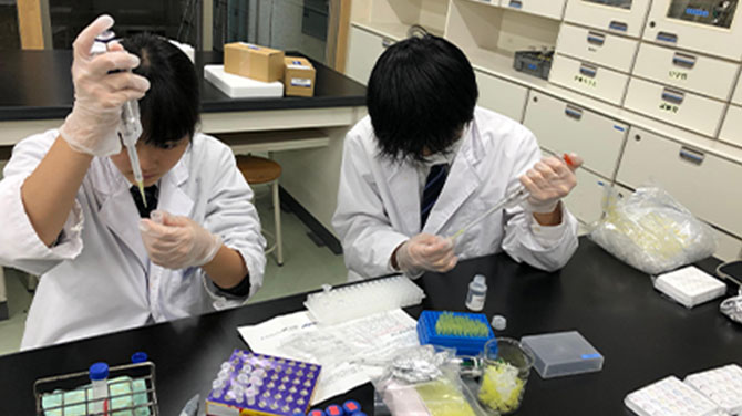 SDGsと生徒個々の問題意識に基づいた探究テーマについて、主体的・協働的に探究します。書籍やインターネットから情報を収集するだけでなく、外部機関との協働や実験・調査、校内外でのワークショップの企画・運営などを通して、実社会と結びついた深い学びが可能になります。複数回設定された校内外の発表のたびに生徒はインスピレーションを得てさらなる創造に至り、また校外に新たな探究仲間を見出すことで探究の一層の広がりと深まりを獲得します。