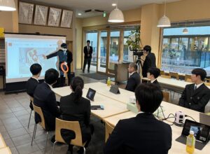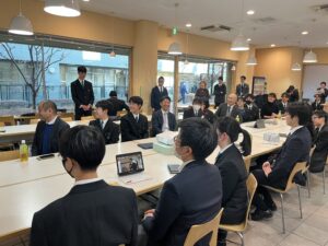また、生徒自身で作成した名刺を交換する場面もありました。生徒にとっては初めての経験となり、貴重な機会となったことでしょう。