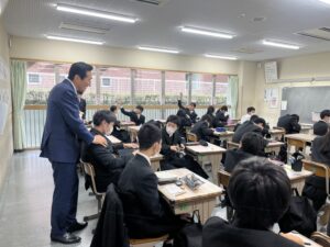 今年は、クラス名が書かれた大きなルーレットを回し、当たったクラスからランダムに選出された生徒が、自身の夢についてスピーチを行いました。