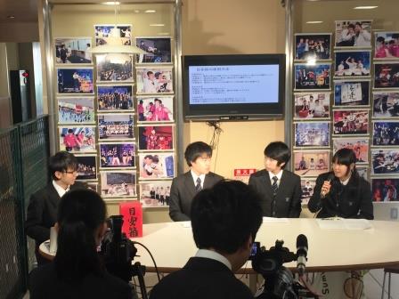 写真は、2月16日(月)1限に実施された「マニフェスト放送・役員討論会」の様子です。