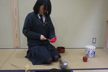 地域との連携も強く行っていて、毎週ボランティアで講師の先生がいらしてくれたり、文化祭ではお客さんにお茶の本場・京都から届いた本物のお茶とお菓子をなんと100円で提供したりしています!文化祭に足を運んだ際には是非ご賞味あれ!