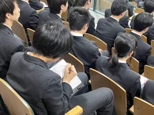 講義中は、夢を刻む郁文館オリジナル手帳「夢手帳」に必死にメモを取る生徒の姿がありました。