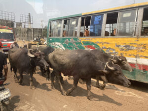 楽しく現地の学生と交流をした一方で、都市部から少し離れるとガラッと雰囲気が変わりました。信号機が稼働しておらず絶え間なくクラクションが響いていたり、高速道路を人が歩いていたりと、普段生活している土地では見かけない現象に、生徒たちもバスの中から窓の外をじっと見つめて観察していました。