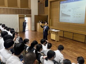 5月24日に、翌週に修学旅行を控える中学2年生を対象に「生命の大切さ」、PBLツアー(修学旅行)を控える高校2年生を対象に「国際人として必要なこと」について理事長から直接講義が行われました。