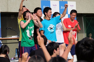 Facebookのために写真を撮り続け、リアルタイムで記事を更新してくれた広報委員、今年は記録だけでなく、保護者席として開放した教室への生中継のために重たい機材を持って走り回ってくれたIBSの委員、清掃や受付をしてくれた環境美化委員・風紀委員、開会式・閉会式で演奏をしてくれたブラスバンド部、そして3月から体育祭の準備を続け、当日もピンク色のTシャツを着て活躍してくれたエンターテインメント委員会の生徒たち。全員の力があってこそ、このすばらしい体育祭を実現することができました。