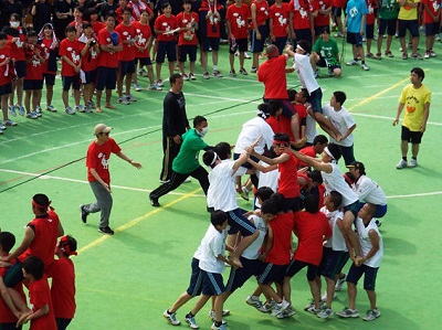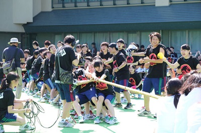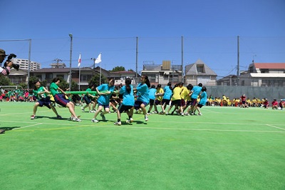綱引きやリレー、障害物競走、棒倒しなど体育祭の定番競技から、全校生徒を居住地ごとに縦割りした「団」ごとに行う応援合戦など、様々な種目が行われ、どの種目でもグラウンドは声援で溢れていました。