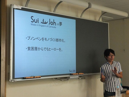 カンボジアからはるばるお越しいただいたのは現地で「ファッションと伝統の融合」を図るアパレル企業Sui-Johを経営している浅野佑介さん!グローバル高校協働ゼミのアートゼミと日本台湾文化ゼミのメンバーに向けて講演をして頂きました。文化継承やアート、ビジネスなど様々な観点からお話があり、その熱意ある講演に生徒は胸を打たれました。