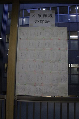 なんと、今回は書道部の山城佑介君がこの標語を書きました。校舎に入ってすぐの所に貼ってあります。これによりいじめを許さないという意識がより一層高く保てます。