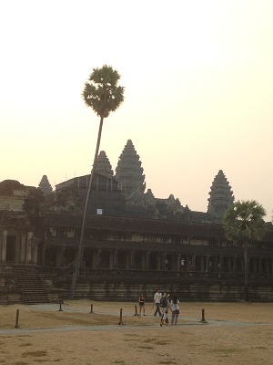 そして、カンボジア滞在の最終日の朝、私たちはアンコールワットの日の出とベンメリア遺跡を鑑賞してきました。渡航前より事前学習で宗教や歴史について学んできた生徒たちですが、九百年もの歴史を持つカンボジアを代表する遺跡から上がってくる日の出や森林を進んだ先に急に開ける遺跡を目にし、文章や絵からでは伝えきれない美しさ、荘厳さを体感することとなりました。