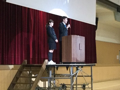 現在、郁文館には2人の留学生が来ています。先日の全校集会で,2人からの自己紹介がありました。