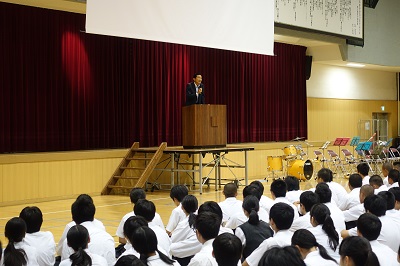 はじめに、渡邉理事長先生からお話しがありました。先日応援に行かれた高校野球部の試合結果や剣道部の試合結果について、「努力の成果が見られて良かった」と選手達を労いました。