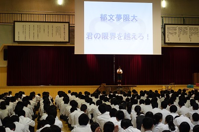 ② バングラデッシュで起こったテロ事件について、姉妹校に赴任されている先生方の無事が報告されました。最近海外で起こっているテロ事件を受けて、「日本は島国で資源に乏しく、海外との貿易によって発展してきた国。海外との交易無くして日本の発展はなし得ない。安全だとされている国・地域には、勇気をもって飛び出そう」とのメッセージを生徒達に送りました。