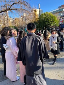 声をかけ続けていると、写真撮影や道案内など頼まれる場面も。地元の観光名所について詳しく説明したり、観光客が迷わないようにサポートするなど、貴重な体験をすることができました。SDGs委員会のメンバーたちは、自信を持って行動し、大学生と比べても遜色なく活動していました。観光客と会話を楽しみながら、交流の中でお互いに学び合う姿が印象的で、みんなで協力して役割を分担しながら活動を進めていました。