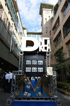 ●校門をくぐり、レッドカーペットならぬブルーカーペットに導かれ、郁文名物「DREAM」オブジェに到着。2日間、約4,500人の来場の皆様をお出迎えしました
