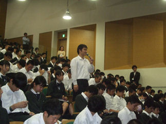 講座の最後には、質疑応答の時間がありました。生徒からは、国際関係に関することから、自分の意識の持ち方に関するものまで様々な質問が飛びだし、理事長先生は一つ一つの質問に丁寧に答えて下さいました。