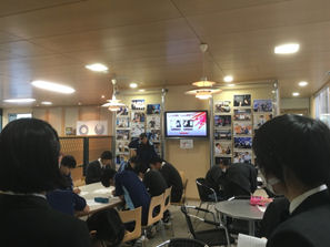 昼休みには、委員が各教室をまわりながら声かけを行いました。また、1階のテレビ前ではいじめ予防のDVDを流しました。『被害者』視点と『加害者』視点からみたいじめのアニメで、約10分間の映像でしたが、多くの人が立ち止まって見ていました。