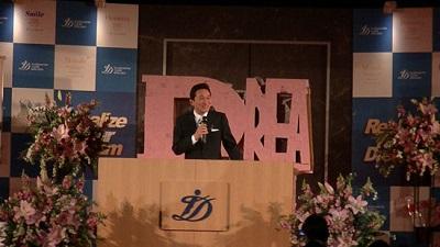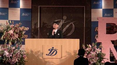 理事長先生祝辞です。理事長先生から様々な活躍して貰いたい思いを込めて最後の言葉として、夢を叶えるための「夢7原則」を話されました。