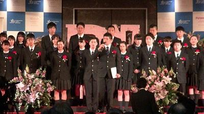 まずは、在校生代表による国歌斉唱、生徒会長より卒業生へのメッセージ。これまでの先輩との思い出などを、時には笑いもあるあたたかい、はなむけの言葉でした。