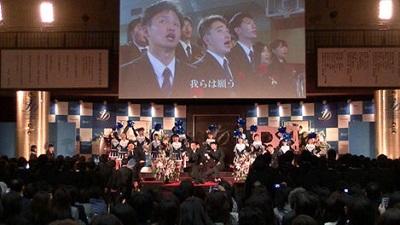 あたたかいメーセージの後は、卒業生から受け継ぎし、次期団長とチアリーディング部による、卒業生へ門出を祝うエールが心を込めて行われました。そして、卒業生の応援団長から在校生への熱い応援エールがありました。