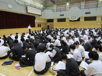 5月6日(土)、1限目に生徒対象の進学説明会が行われました。4月も終わり、本格的に受験シーズンに入った生徒たちは進路指導部長である内藤先生の話を食い入るように聞いていました。